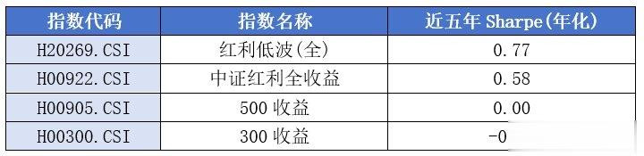 红利低波全收益指数近五年Sharpe(年化)
